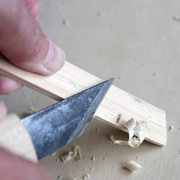 Лезо виготовлено з столової сталі за допомогою традиційного методу кування та характеризується міцністю, стійкістю до сколів і легкістю заточування.